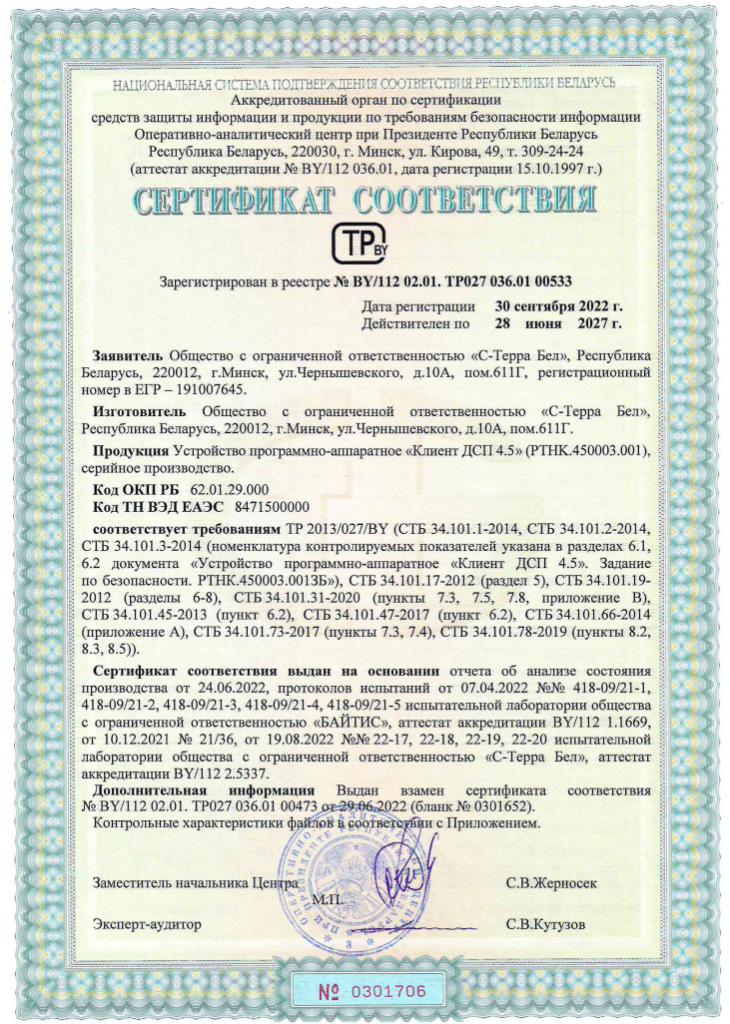 ПАУ «Клиент ДСП 4.5» совместим со следующими продуктами компаний C-Терра Бел: